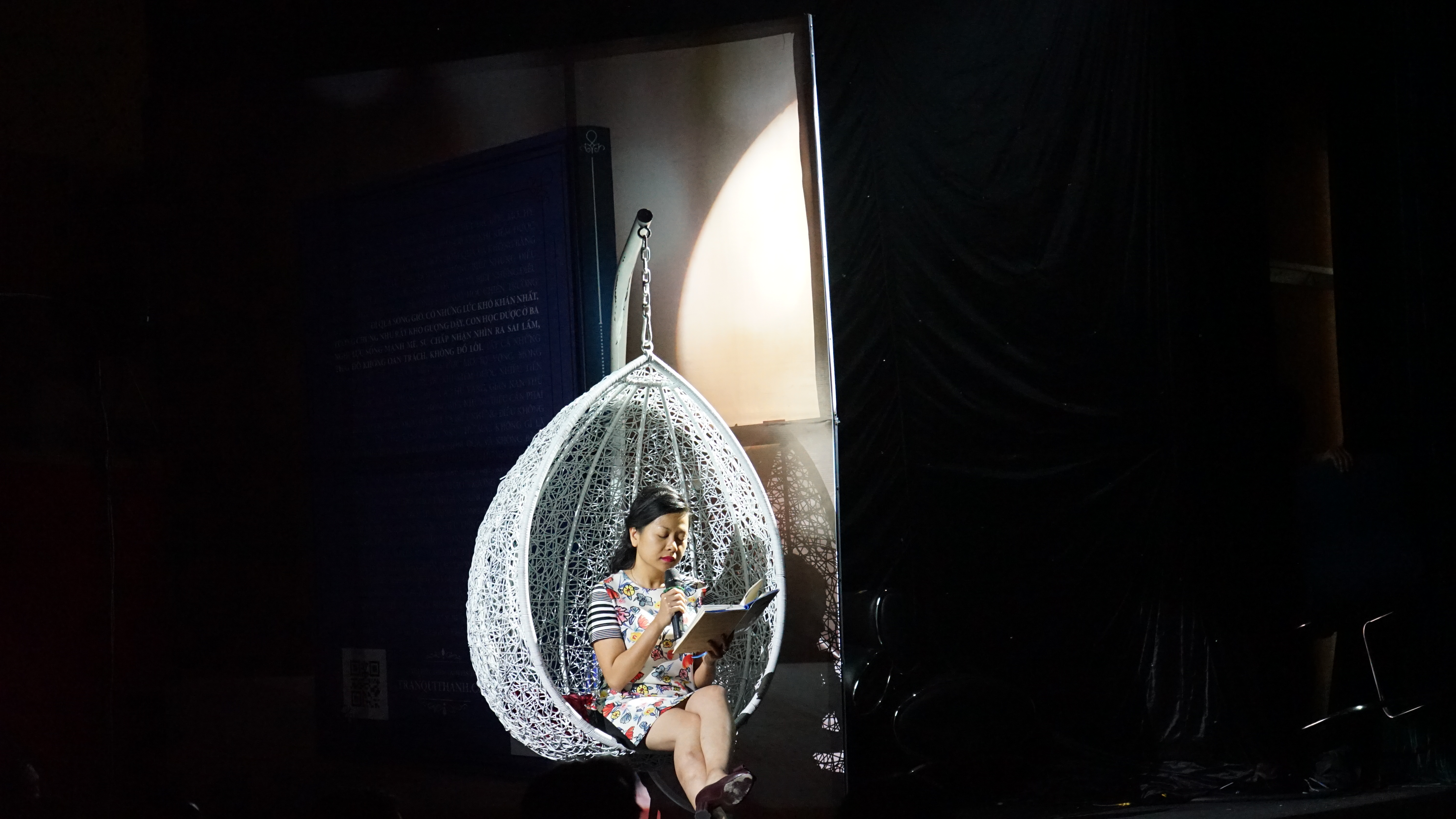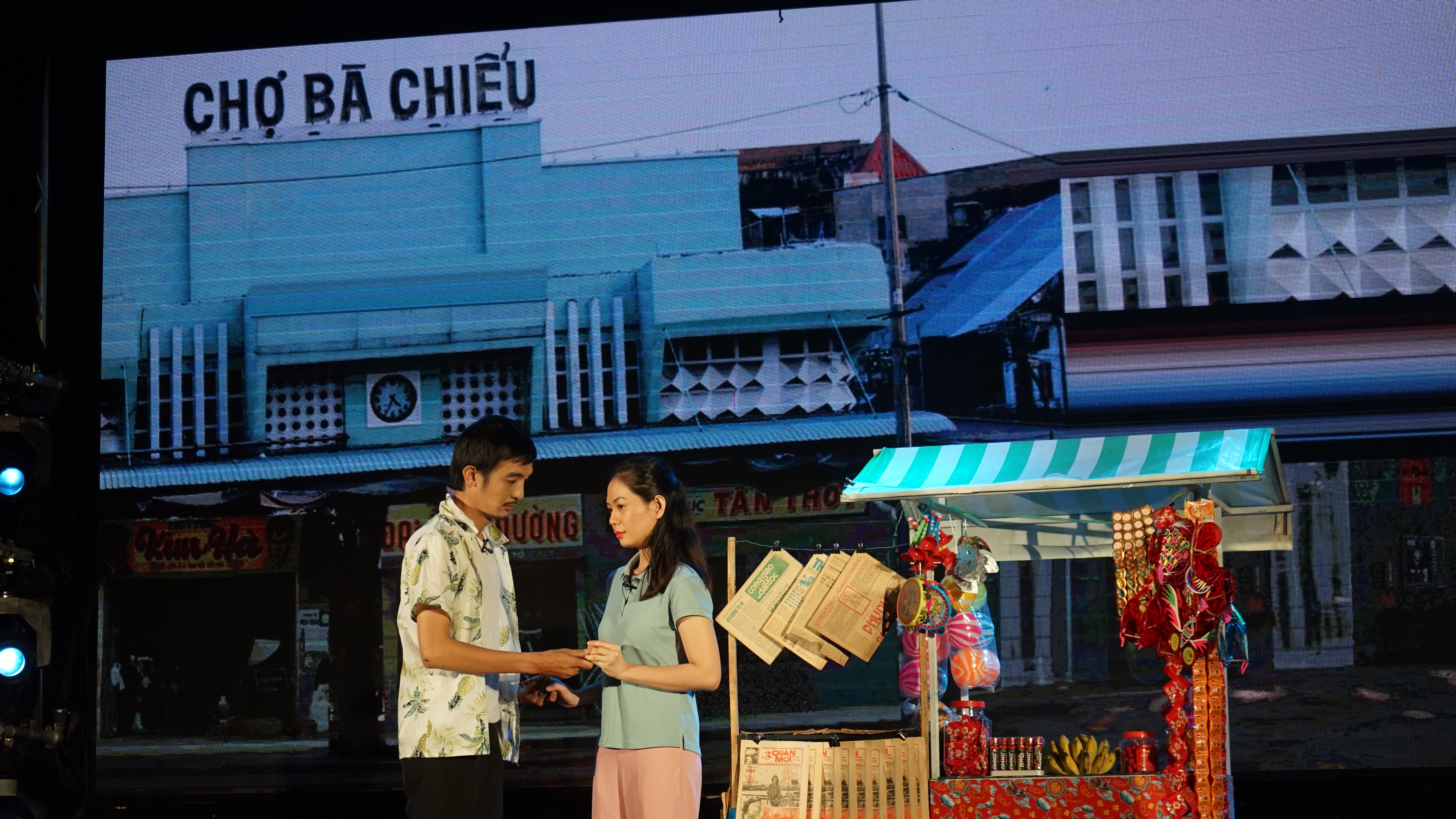 Nữ doanh nhân, tác giả Trần Uyên Phương là người tham gia vai trò dẫn dắt vở kịch qua từng phân đoạn.