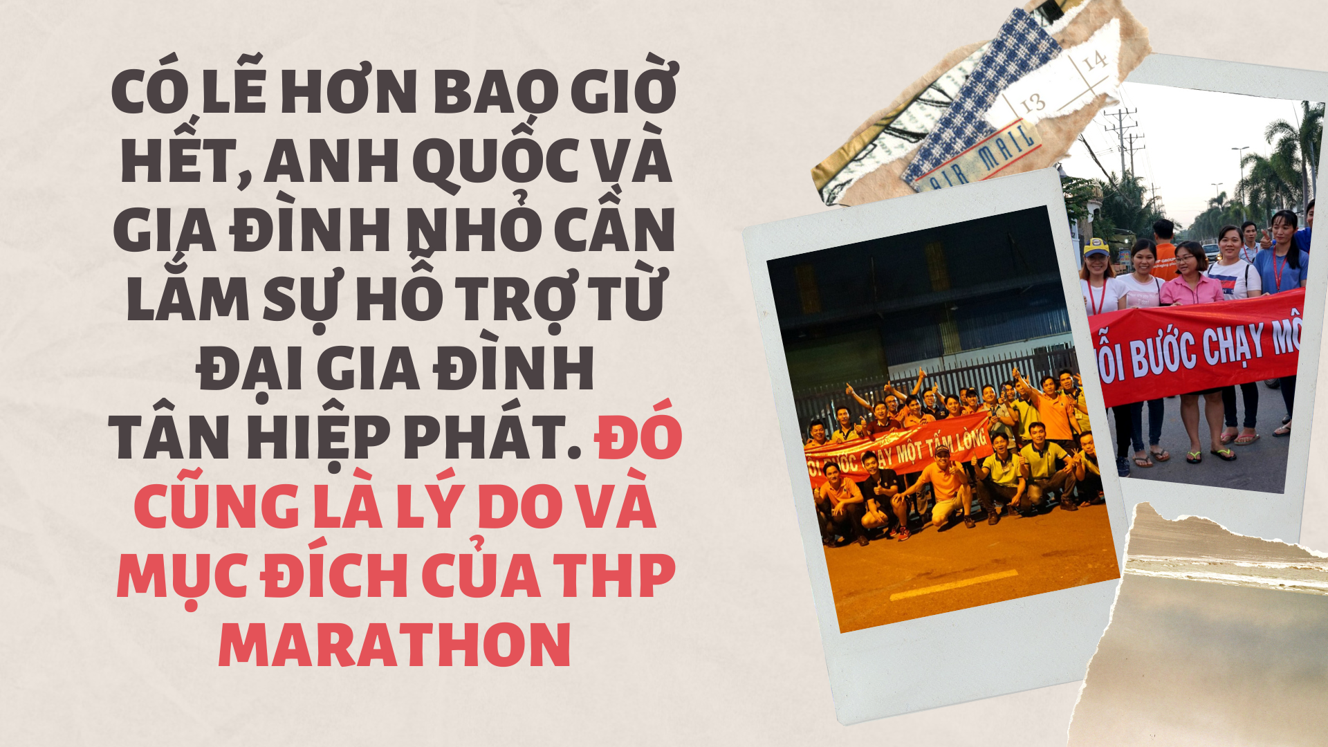 Có lẽ hơn bao giờ hết, anh Quốc và gia đình nhỏ cần lắm sự hỗ trợ từ Đại gia đình Tân Hiệp Phát. Đó cũng là lý do và mục đích của THP Marathon.